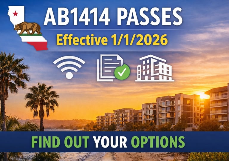 California AB 1414 impacts how bulk internet is delivered in MDUs. Learn how Bulk Internet Services provides a compliant, owner-paid connectivity model that protects NOI.
